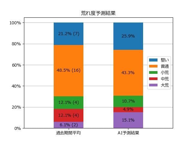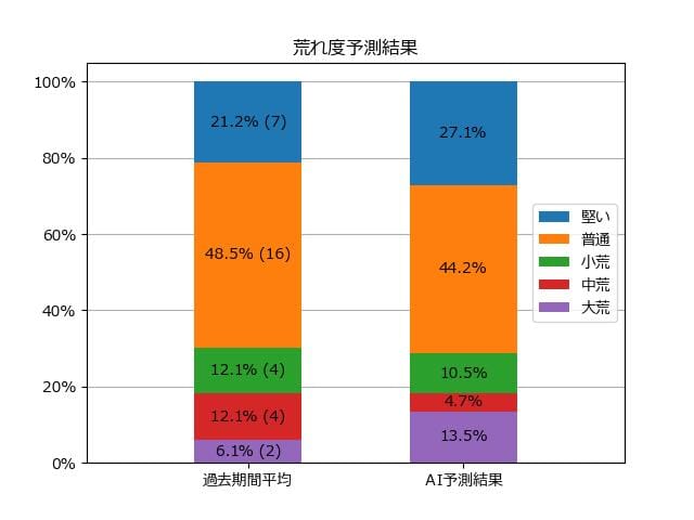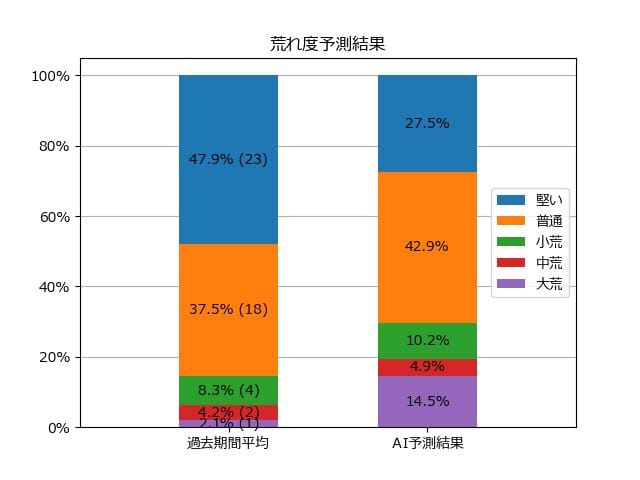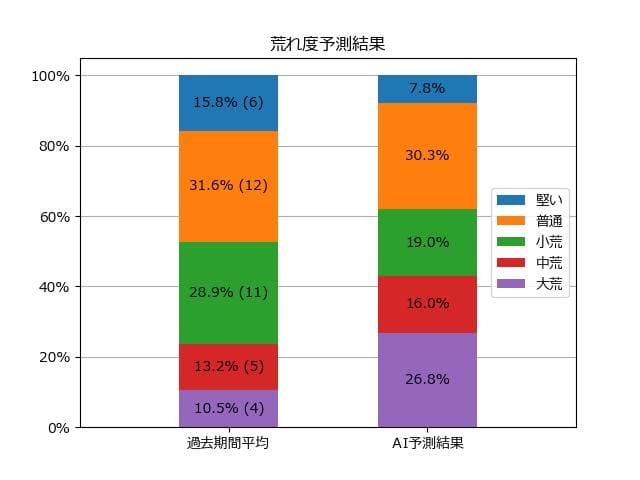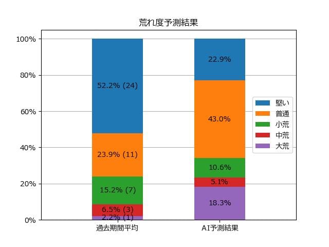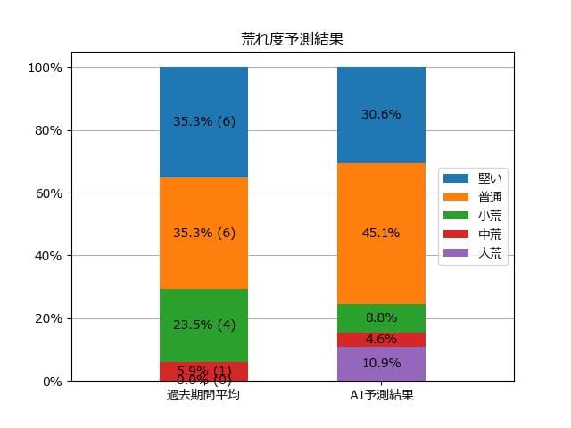 ※【 】内の数値が高いほど、AIが「買い時」と判断した買い目です。📊 荒れ度予想(単勝ベース) レースの波乱度を単勝配当の想定レンジで表示しています。