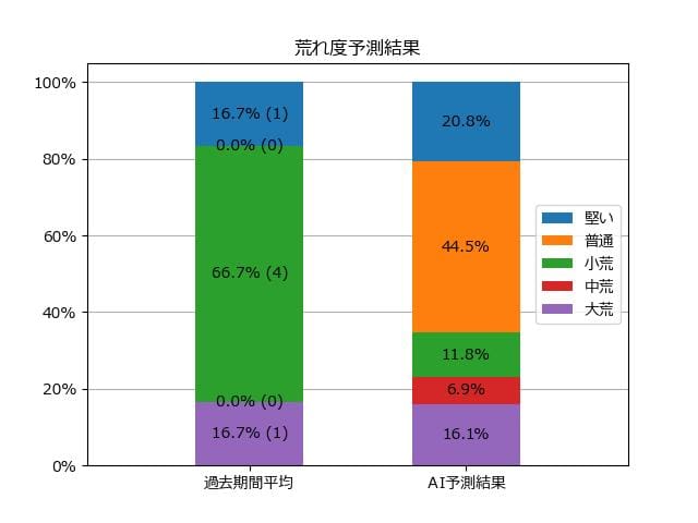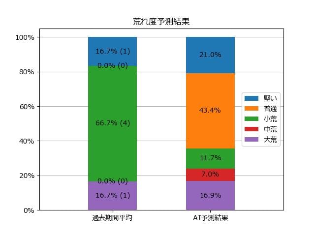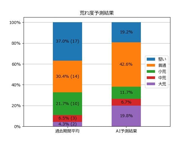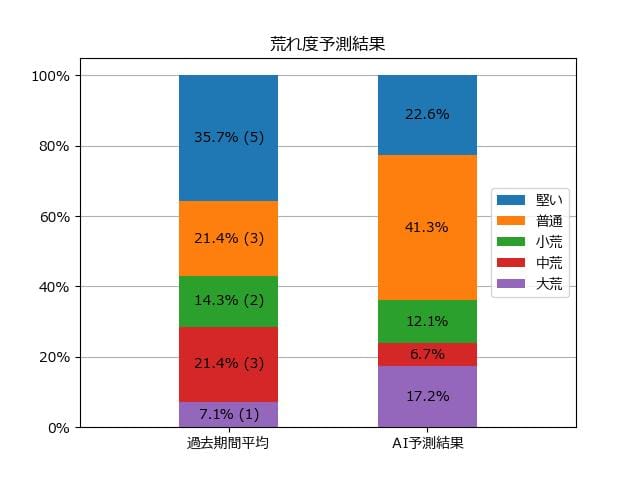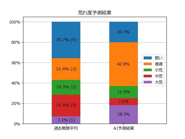 ※【 】内の数値が高いほど、AIが「買い時」と判断した買い目です。📊 荒れ度予想(単勝ベース) レースの波乱度を単勝配当の想定レンジで表示しています。