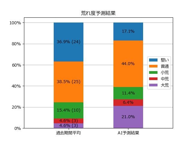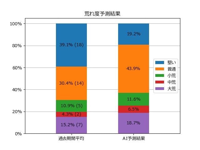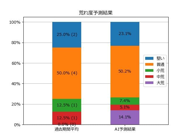 ※【 】内の数値が高いほど、AIが「買い時」と判断した買い目です。📊 荒れ度予想(単勝ベース) レースの波乱度を単勝配当の想定レンジで表示しています。