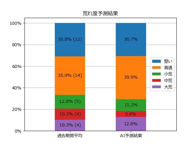 ※【 】内の数値が高いほど、AIが「買い時」と判断した買い目です。📊 荒れ度予想(単勝ベース) レースの波乱度を単勝配当の想定レンジで表示しています。