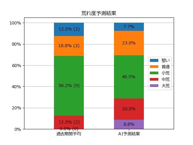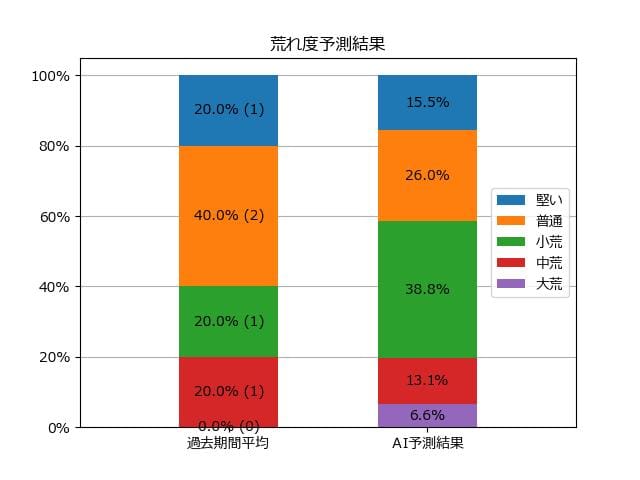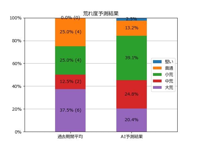 ※【 】内の数値が高いほど、AIが「買い時」と判断した買い目です。📊 荒れ度予想(単勝ベース) レースの波乱度を単勝配当の想定レンジで表示しています。