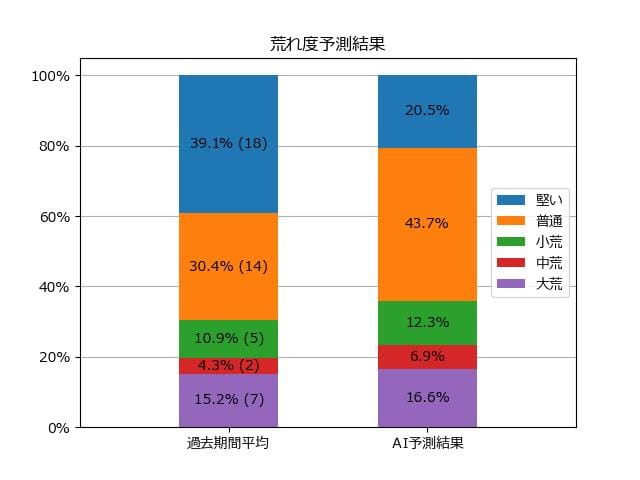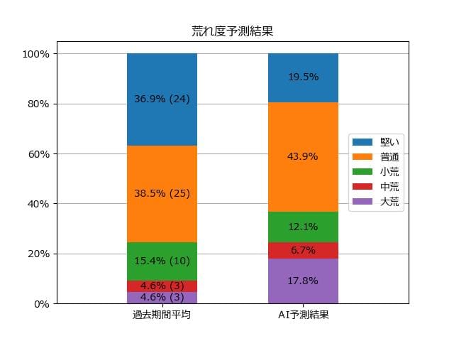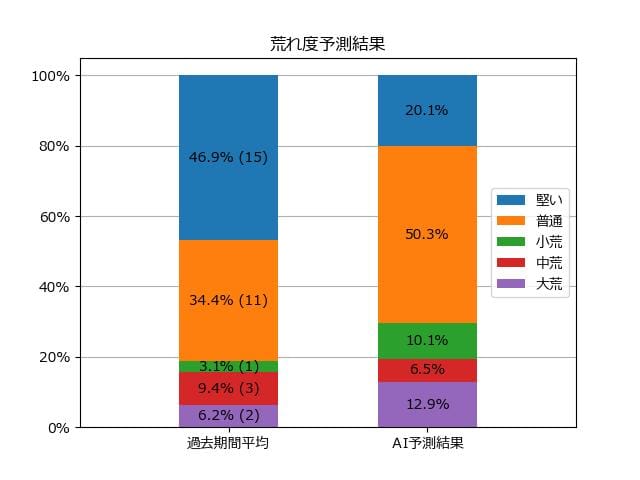 ※【 】内の数値が高いほど、AIが「買い時」と判断した買い目です。📊 荒れ度予想(単勝ベース) レースの波乱度を単勝配当の想定レンジで表示しています。