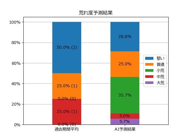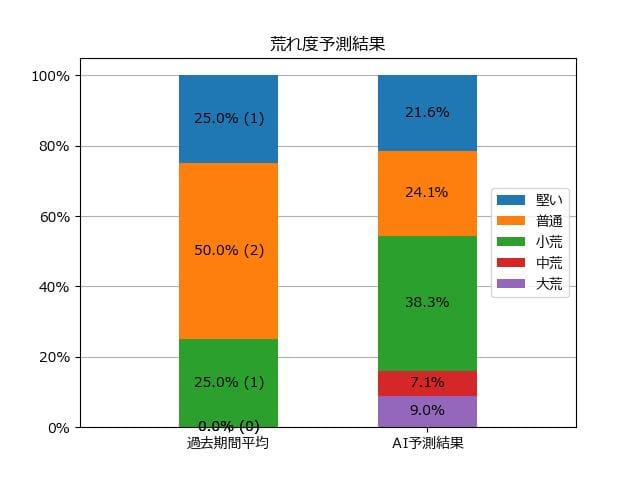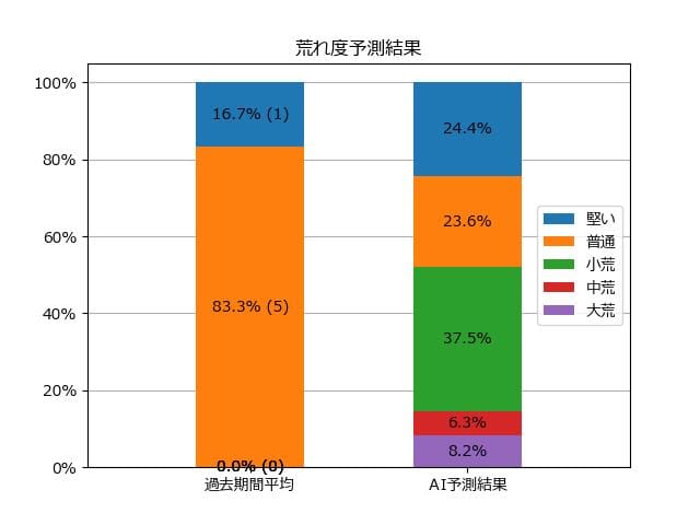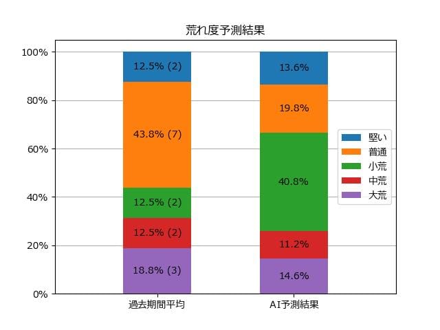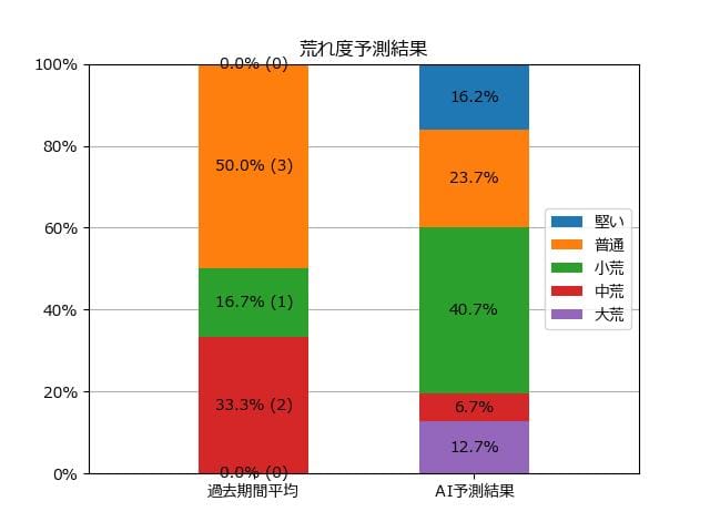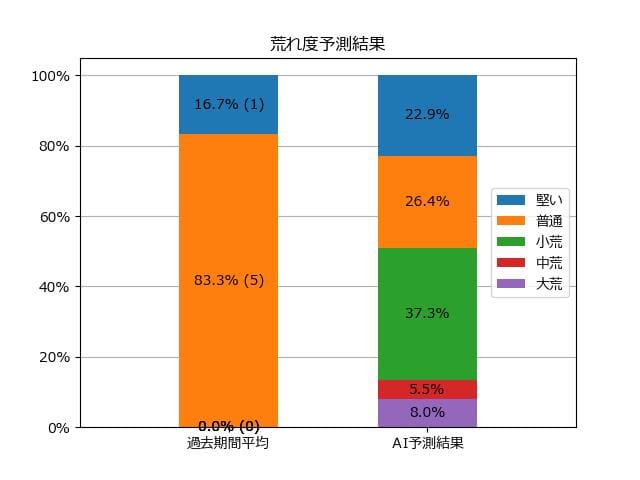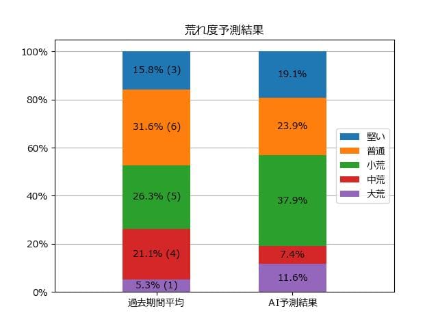 ※【 】内の数値が高いほど、AIが「買い時」と判断した買い目です。📊 荒れ度予想(単勝ベース) レースの波乱度を単勝配当の想定レンジで表示しています。