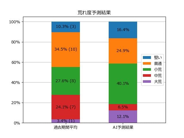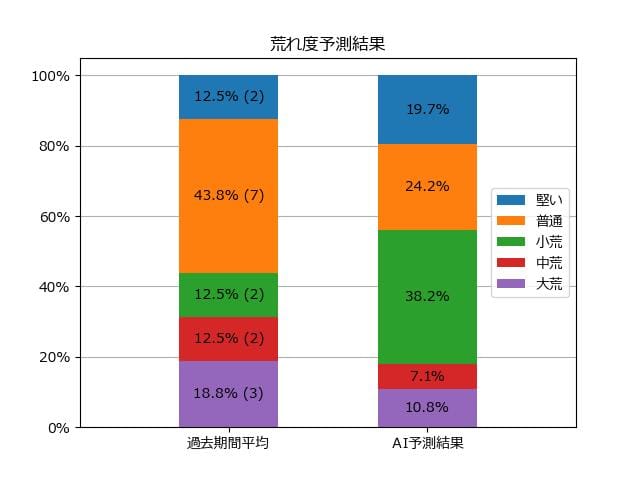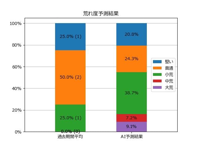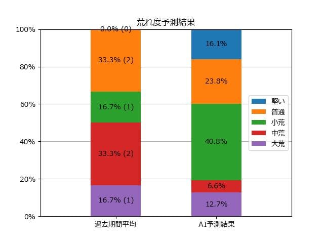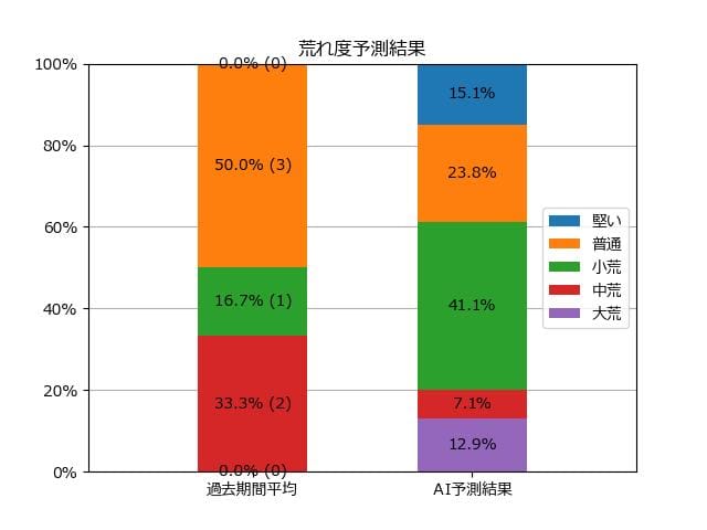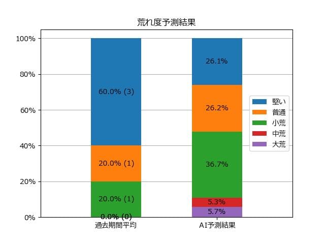 ※【 】内の数値が高いほど、AIが「買い時」と判断した買い目です。📊 荒れ度予想(単勝ベース) レースの波乱度を単勝配当の想定レンジで表示しています。