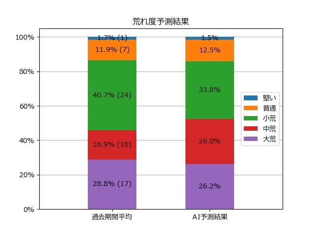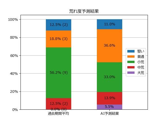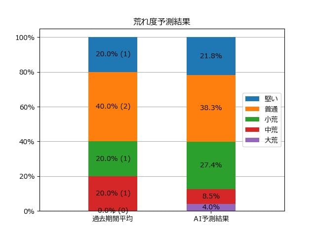 ※【 】内の数値が高いほど、AIが「買い時」と判断した買い目です。📊 荒れ度予想(単勝ベース) レースの波乱度を単勝配当の想定レンジで表示しています。