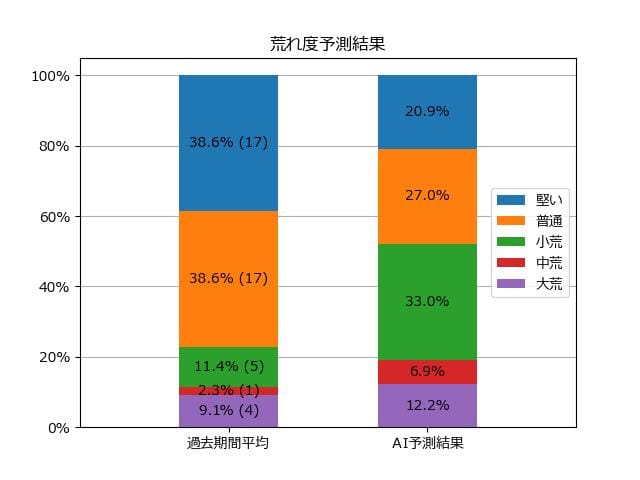 ※【 】内の数値が高いほど、AIが「買い時」と判断した買い目です。📊 荒れ度予想(単勝ベース) レースの波乱度を単勝配当の想定レンジで表示しています。