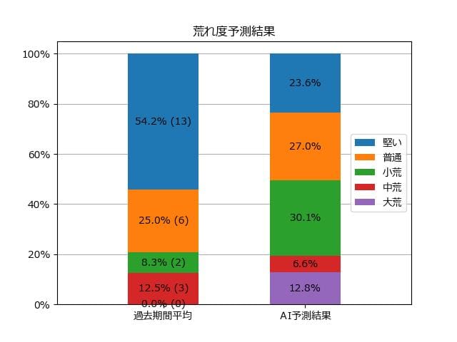 ●:堅実AIの買い目 └ オッズとAI予想確率から、安定して回収率100%超えを目指す買い目を選出。 ○:波乱AIの買い目 └ オッズとAI予想確率から、一発逆転を狙う穴馬中心の買い目を提示。 ※【】内に記載されている数値が高いほど、AIが「買い時」と判断している優秀な買い目です。