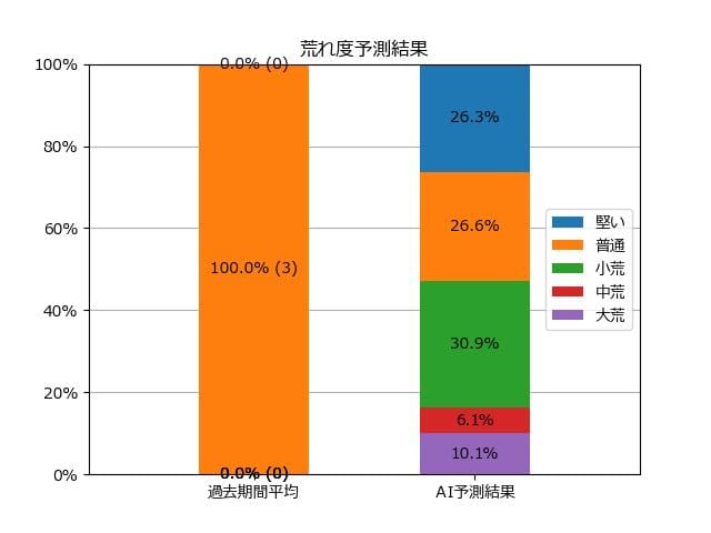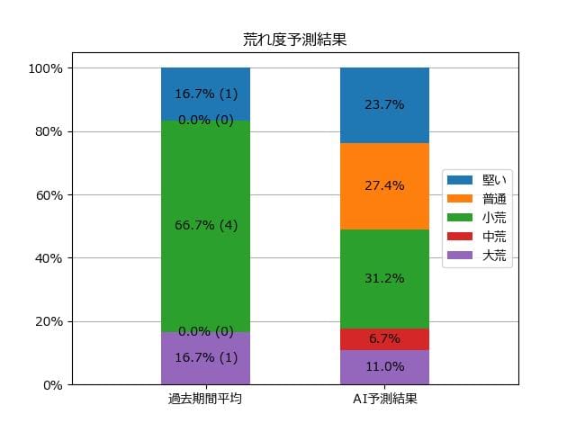 ※【 】内の数値が高いほど、AIが「買い時」と判断した買い目です。📊 荒れ度予想(単勝ベース) レースの波乱度を単勝配当の想定レンジで表示しています。