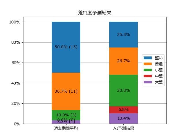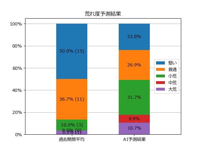 ※【 】内の数値が高いほど、AIが「買い時」と判断した買い目です。📊 荒れ度予想(単勝ベース) レースの波乱度を単勝配当の想定レンジで表示しています。