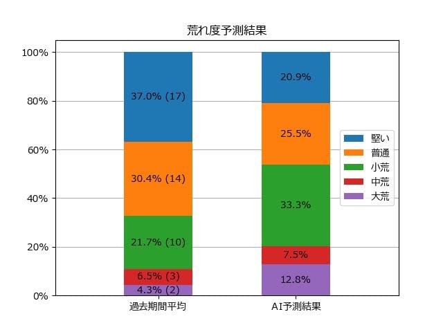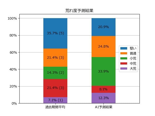 ※【 】内の数値が高いほど、AIが「買い時」と判断した買い目です。📊 荒れ度予想(単勝ベース) レースの波乱度を単勝配当の想定レンジで表示しています。