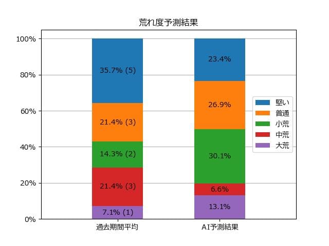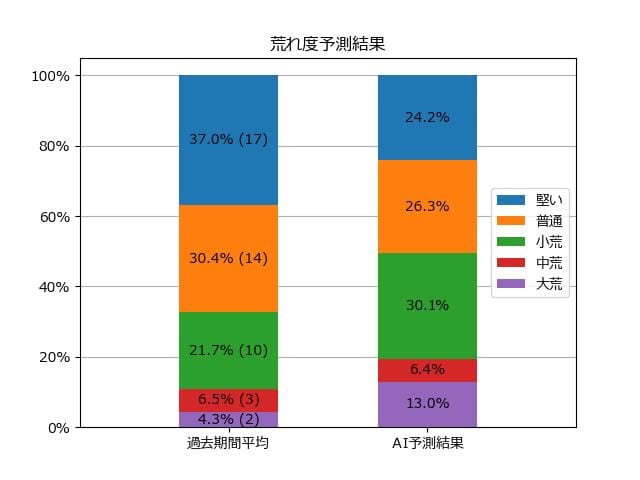 ※【 】内の数値が高いほど、AIが「買い時」と判断した買い目です。📊 荒れ度予想(単勝ベース) レースの波乱度を単勝配当の想定レンジで表示しています。