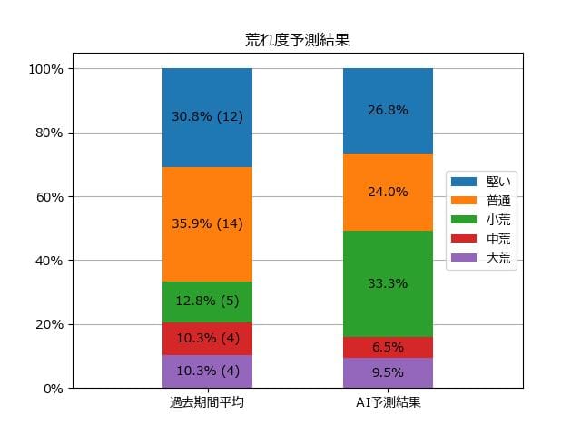 ※【 】内の数値が高いほど、AIが「買い時」と判断した買い目です。📊 荒れ度予想(単勝ベース) レースの波乱度を単勝配当の想定レンジで表示しています。