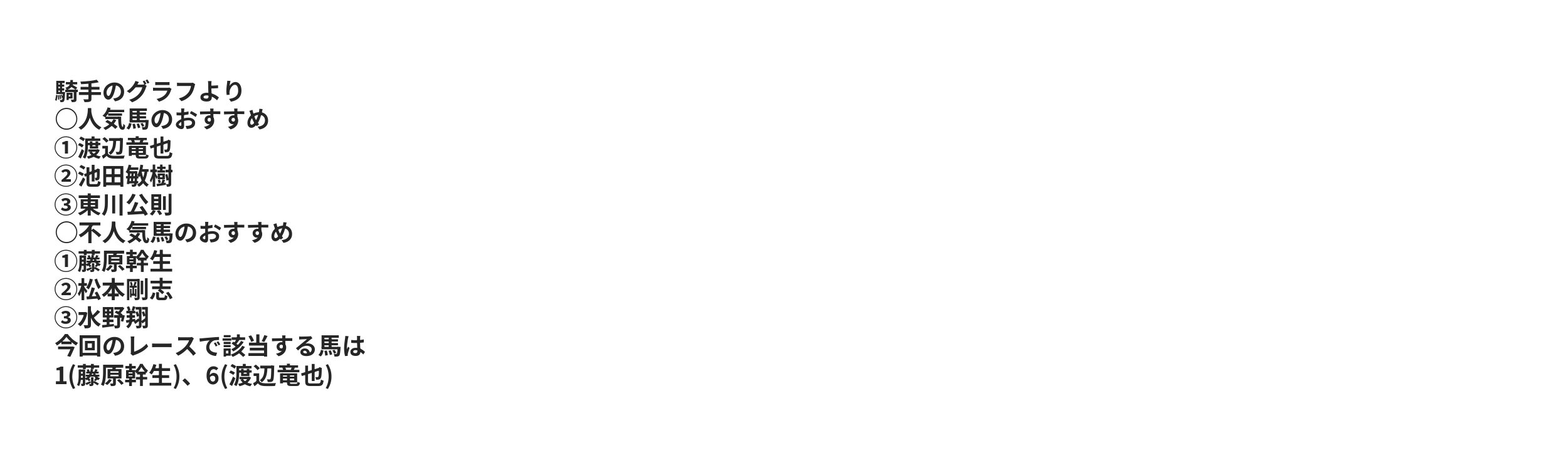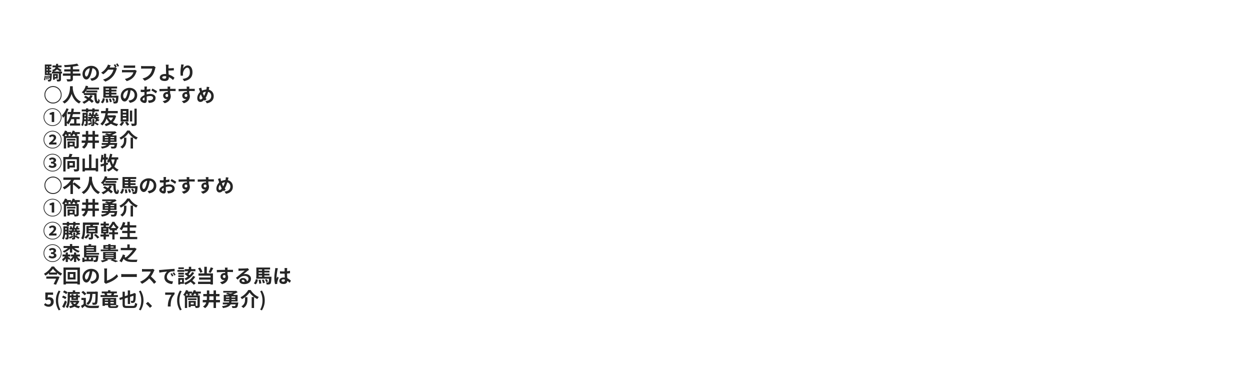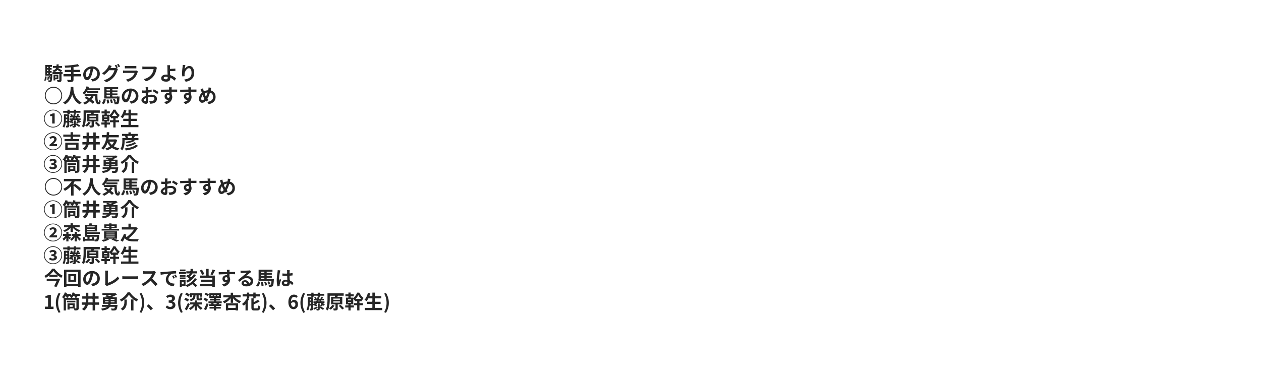 | 〇 | 15.38% | 27.85% | 41.67% | 2 | 2 | リオサラ | 筒井勇介 |
