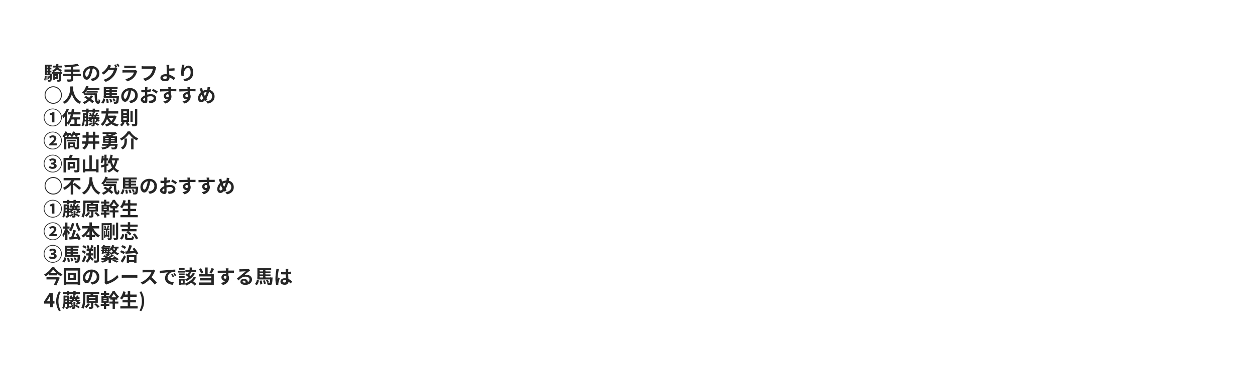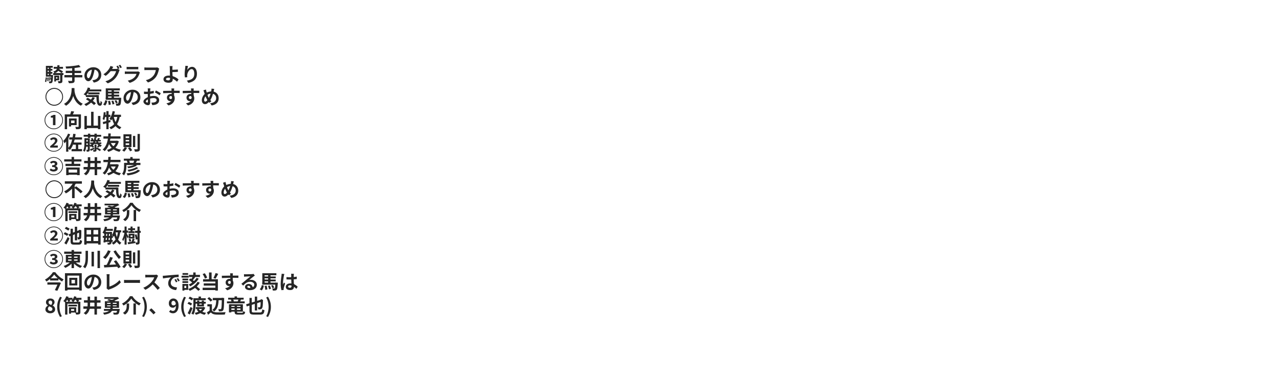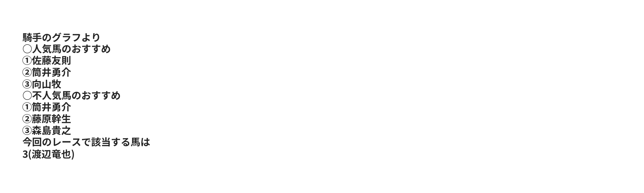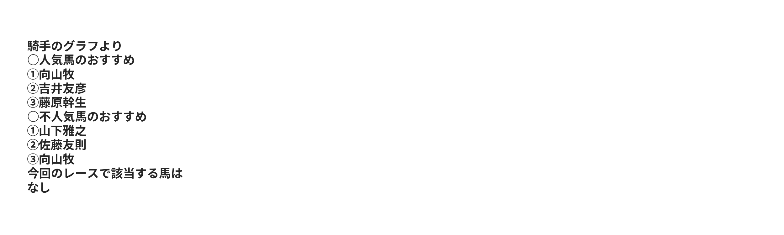 | 〇 | 15.38% | 27.85% | 41.67% | 2 | 2 | リオサラ | 筒井勇介 |