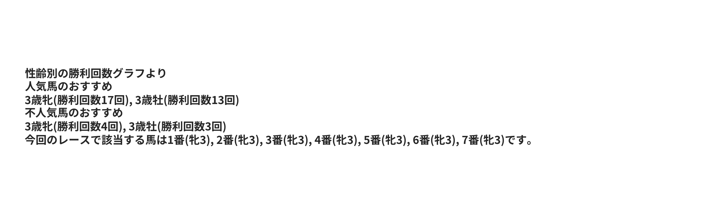 | ◎ | 29.97% | 27.21% | 42.57% | 7 | 7 | チュウワスプリング | 丸野勝虎 |