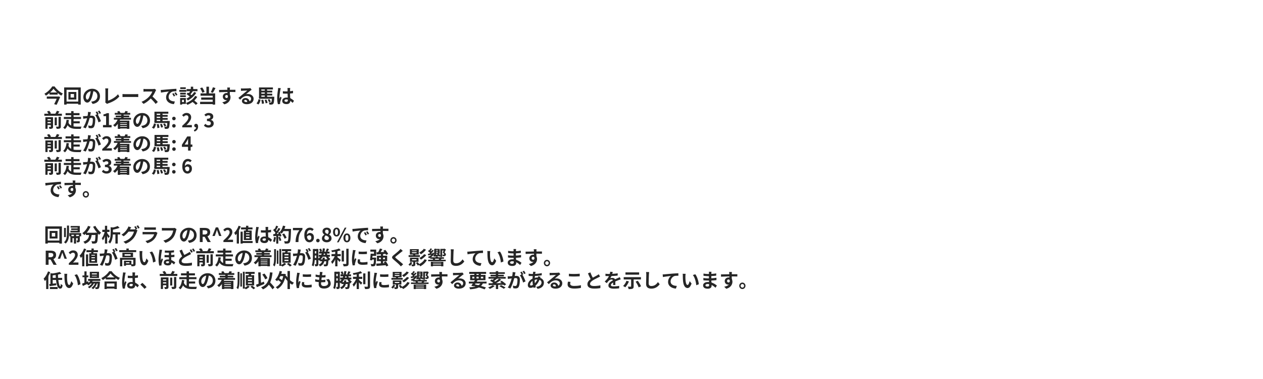 | 勝率予測印 | 勝率 | 連帯率 | 複勝率 | 枠 | 馬番 | 馬名 | 騎手名 |