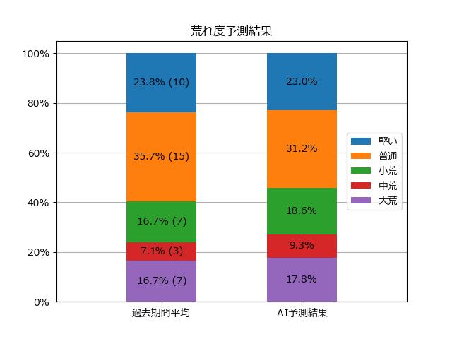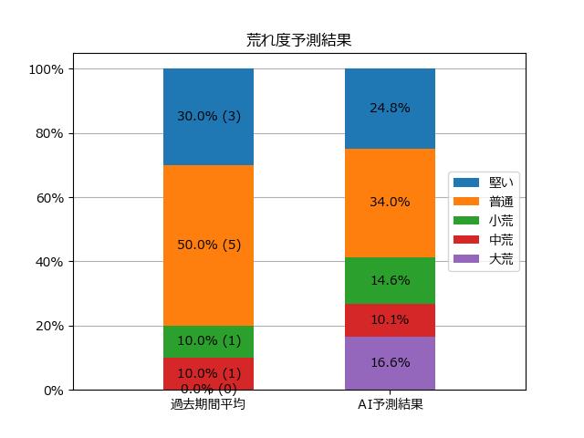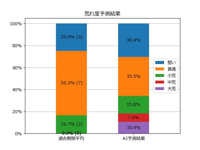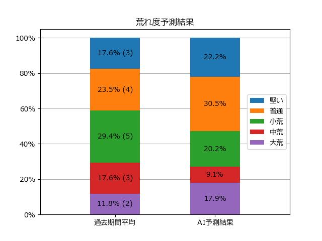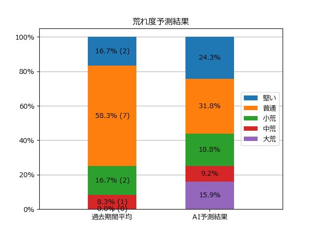 ※【 】内の数値が高いほど、AIが「買い時」と判断した買い目です。📊 荒れ度予想(単勝ベース) レースの波乱度を単勝配当の想定レンジで表示しています。