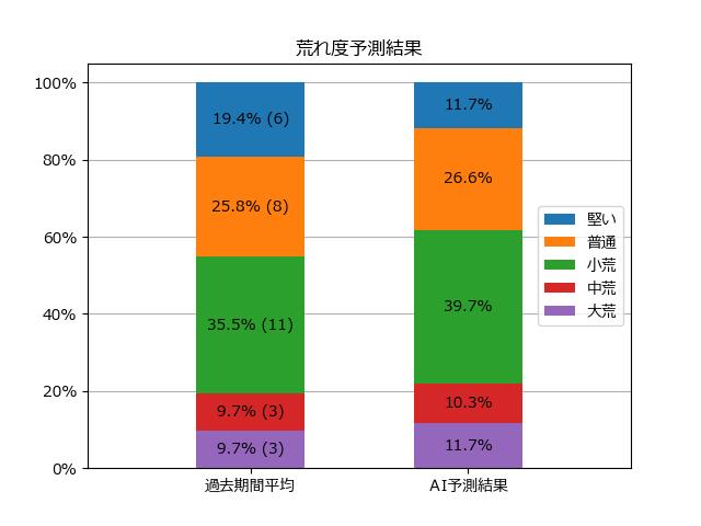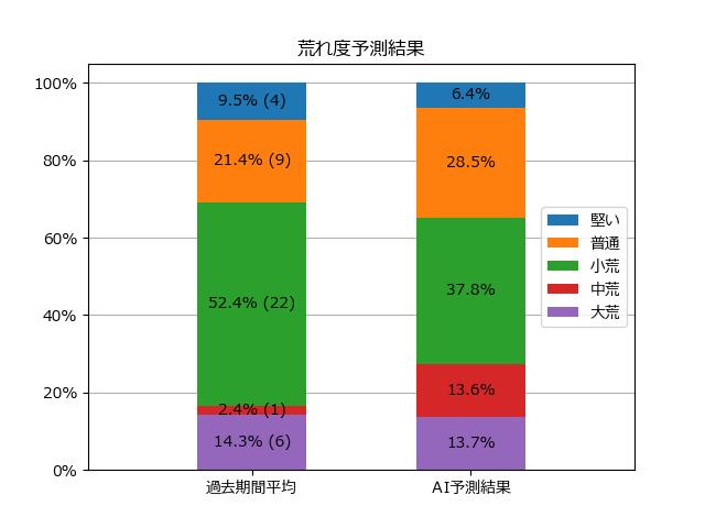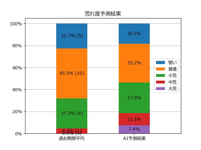 ※【 】内の数値が高いほど、AIが「買い時」と判断した買い目です。📊 荒れ度予想(単勝ベース) レースの波乱度を単勝配当の想定レンジで表示しています。