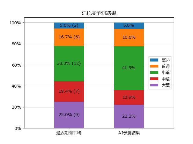 ※【 】内の数値が高いほど、AIが「買い時」と判断した買い目です。📊 荒れ度予想(単勝ベース) レースの波乱度を単勝配当の想定レンジで表示しています。