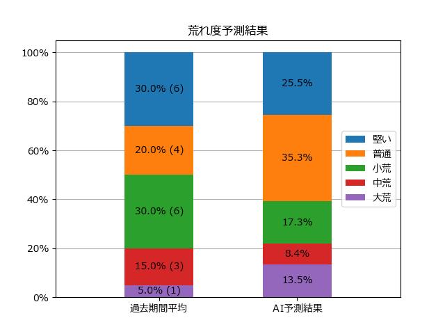 ※【 】内の数値が高いほど、AIが「買い時」と判断した買い目です。📊 荒れ度予想(単勝ベース) レースの波乱度を単勝配当の想定レンジで表示しています。