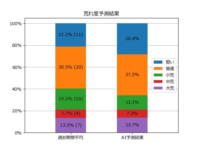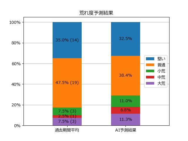 ※【 】内の数値が高いほど、AIが「買い時」と判断した買い目です。📊 荒れ度予想(単勝ベース) レースの波乱度を単勝配当の想定レンジで表示しています。