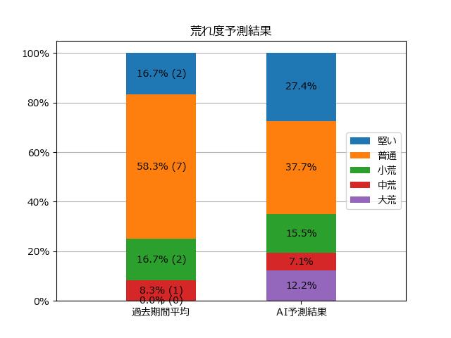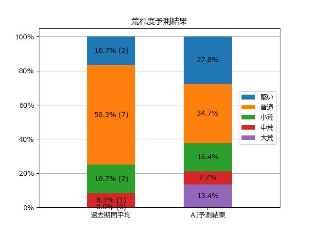 ※【 】内の数値が高いほど、AIが「買い時」と判断した買い目です。📊 荒れ度予想(単勝ベース) レースの波乱度を単勝配当の想定レンジで表示しています。
