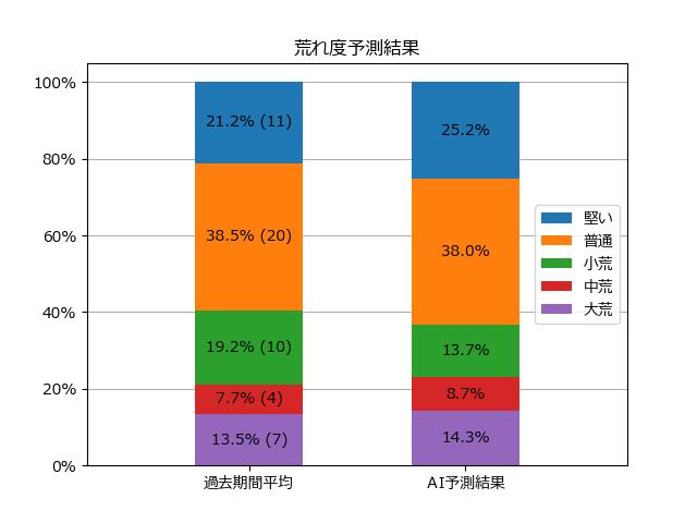 ※【 】内の数値が高いほど、AIが「買い時」と判断した買い目です。📊 荒れ度予想(単勝ベース) レースの波乱度を単勝配当の想定レンジで表示しています。