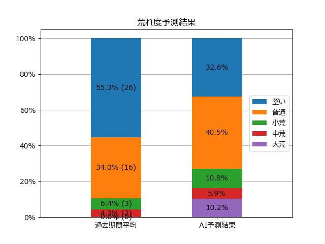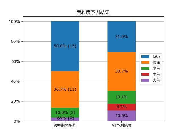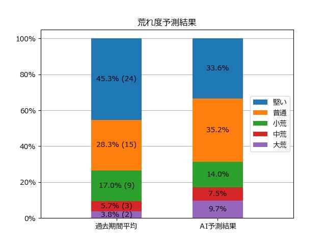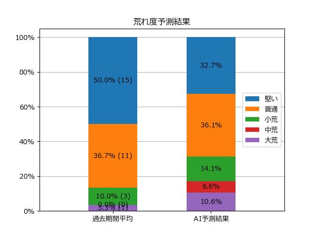 ※【 】内の数値が高いほど、AIが「買い時」と判断した買い目です。📊 荒れ度予想(単勝ベース) レースの波乱度を単勝配当の想定レンジで表示しています。