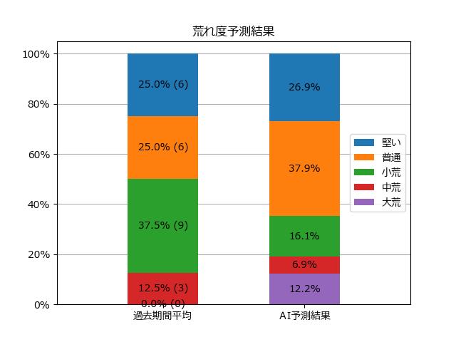 ※【 】内の数値が高いほど、AIが「買い時」と判断した買い目です。📊 荒れ度予想(単勝ベース) レースの波乱度を単勝配当の想定レンジで表示しています。