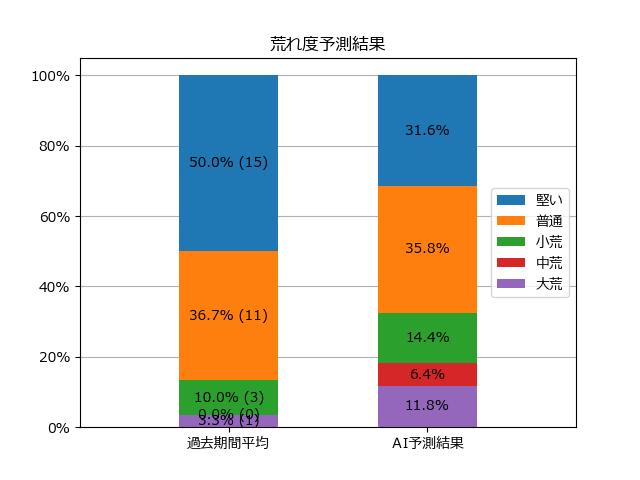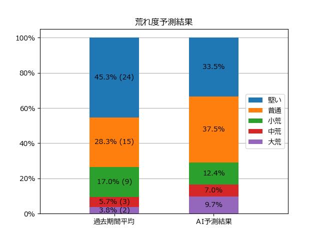 ※【 】内の数値が高いほど、AIが「買い時」と判断した買い目です。📊 荒れ度予想(単勝ベース) レースの波乱度を単勝配当の想定レンジで表示しています。